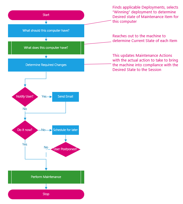 A Maintenance Session has one or more Maintenance Actions. A Maintenance Action could be to install software, apply a Windows Update, or run a Task.