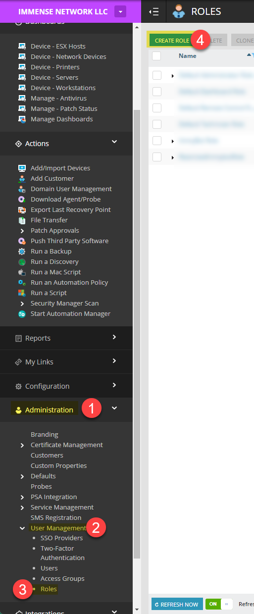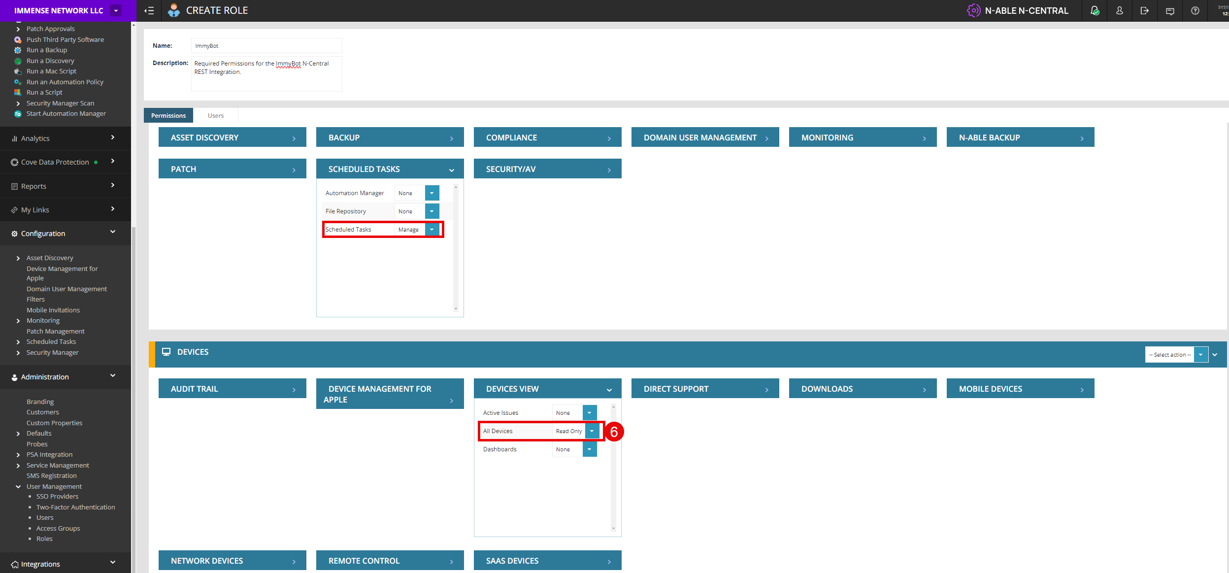 Create an “ImmyBot” role in your N-Central instance using above roles.